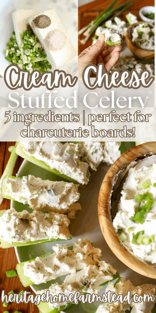 Cream Cheese stuffed celery with thinly sliced green onion is super easy to make. Served as an appetizer or quick snack it is loaded with creaminess and flavor.
