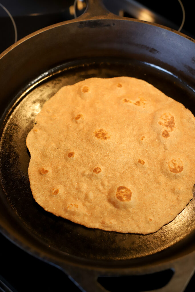*Do I have to use a cast iron? No, although I hightly recommend it! Cast iron holds heat very well therefore it also cooks tortillas well. Use whatever skillet you have available.
